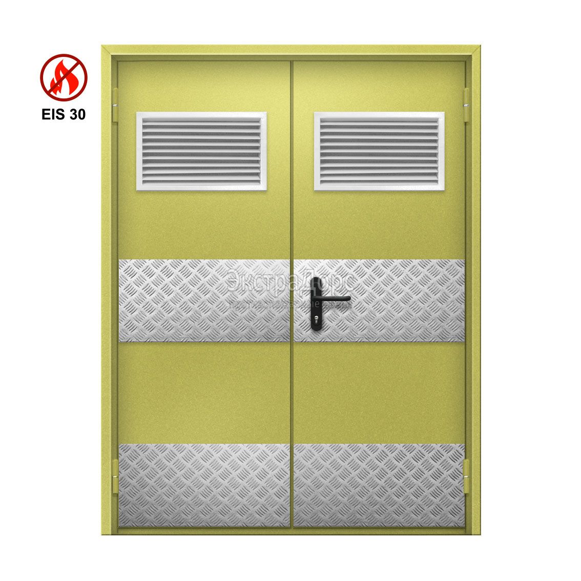 Двухстворчатая огнеупорная дверь EI 30 ДГ-02-EI30 ДП83 двупольная глухая с решеткой в Раменском