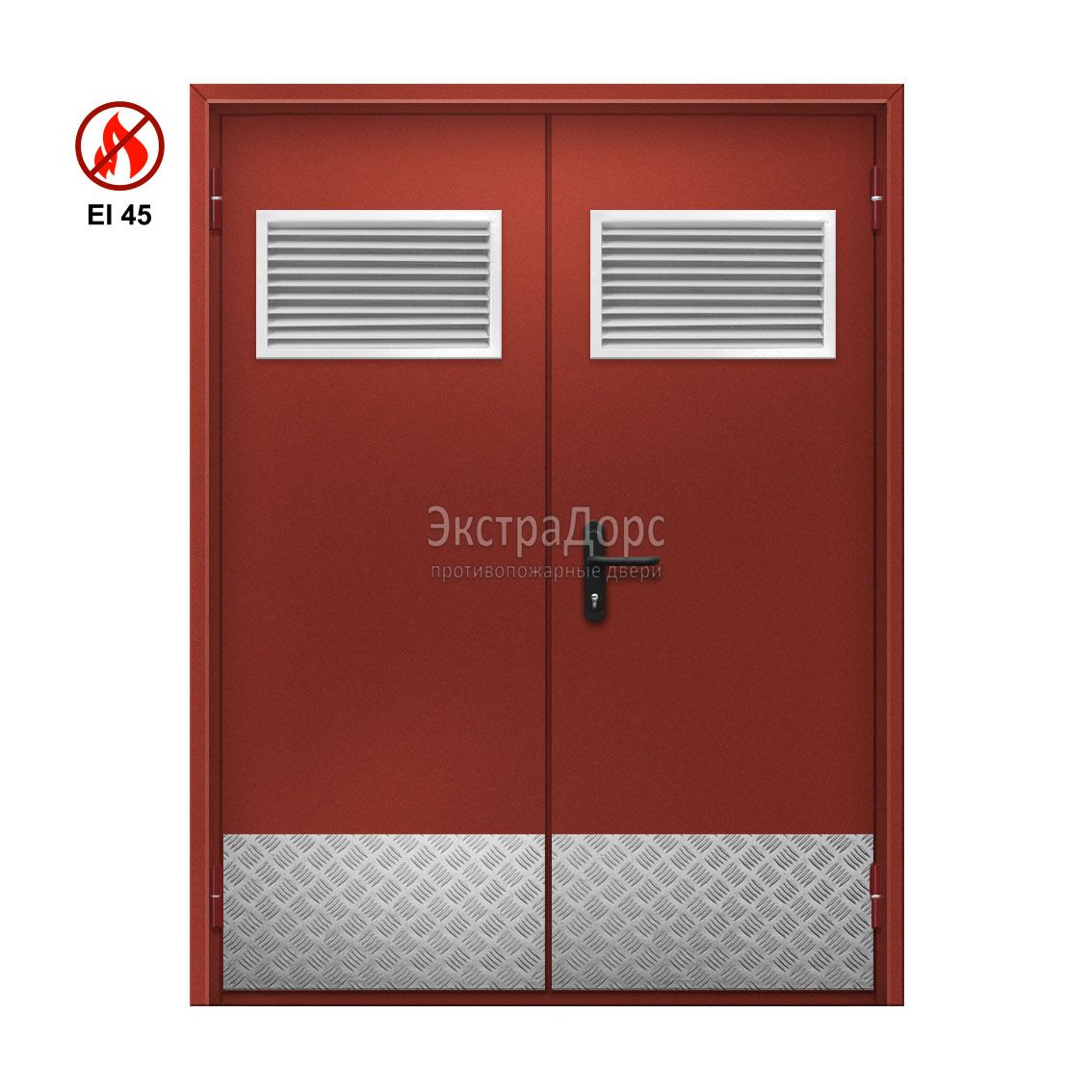 Двупольная огнестойкая дверь EI 45 ДГ-02-EI45 ДП123 двупольная глухая с решеткой в Раменском