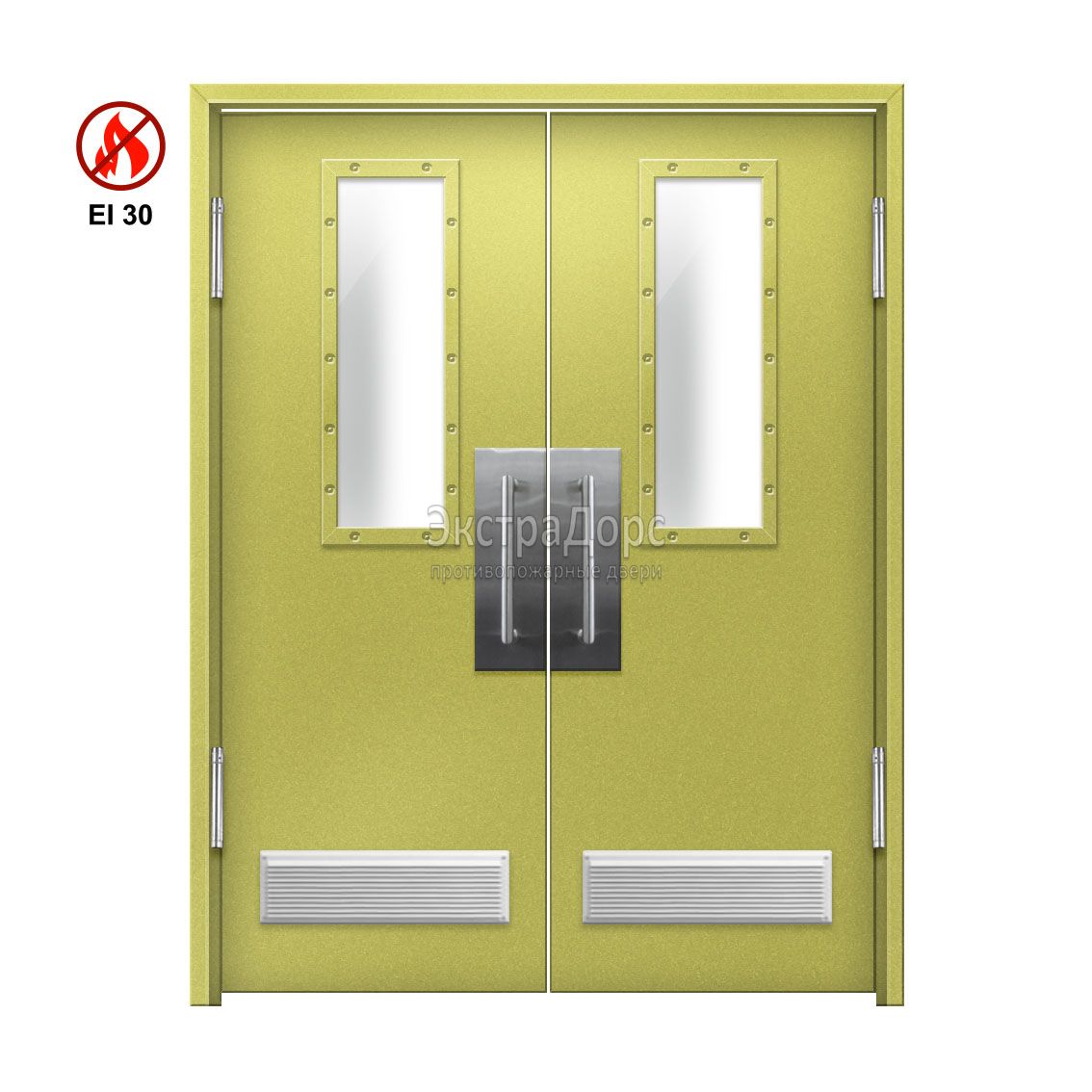 Маятниковая противопожарная дверь остекленная EI 30 ДО-02-EI30 с решеткой ДП37 в Раменском