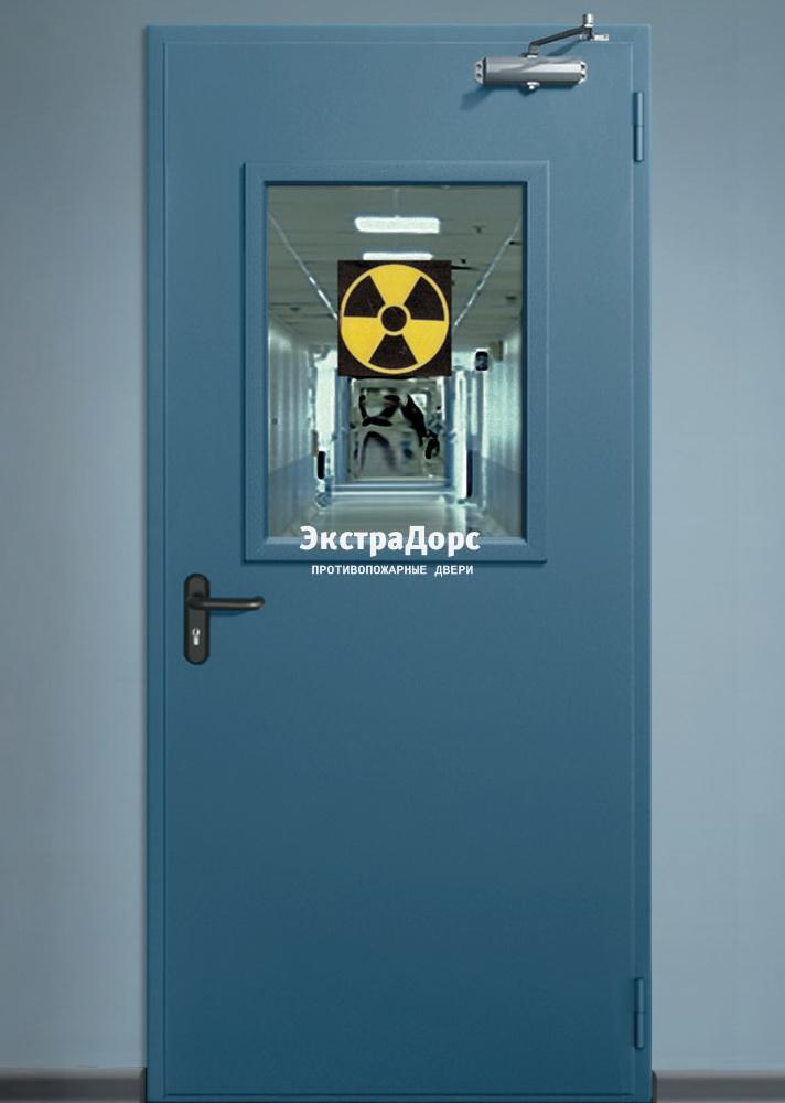 Дверь с выпадающим порогом противопожарная EI 90 синяя с остеклением в Раменском