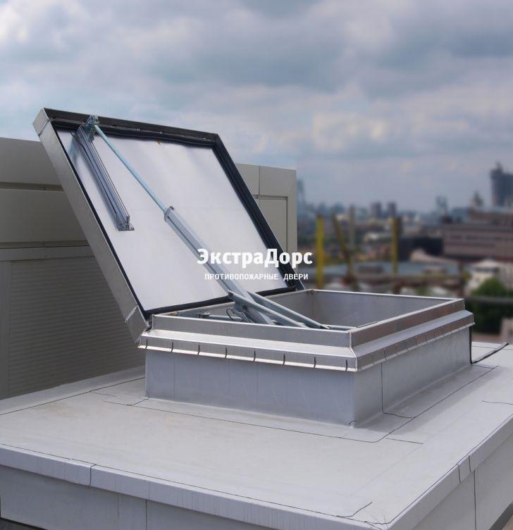 Черный противопожарный люк на кровлю с прозрачной крышкой