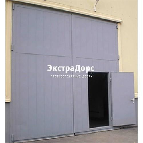 Серые противопожарные распашные ворота с калиткой в Раменском