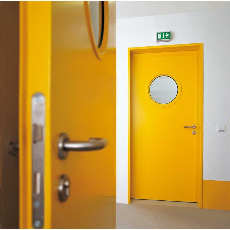 Противопожарная алюминиевая дверь со стеклом желтого цвета в Раменском