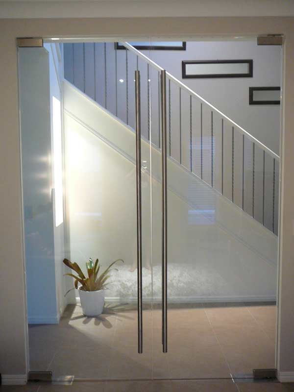 Противопожарная безрамная дверь со стеклом в частный дом в Раменском